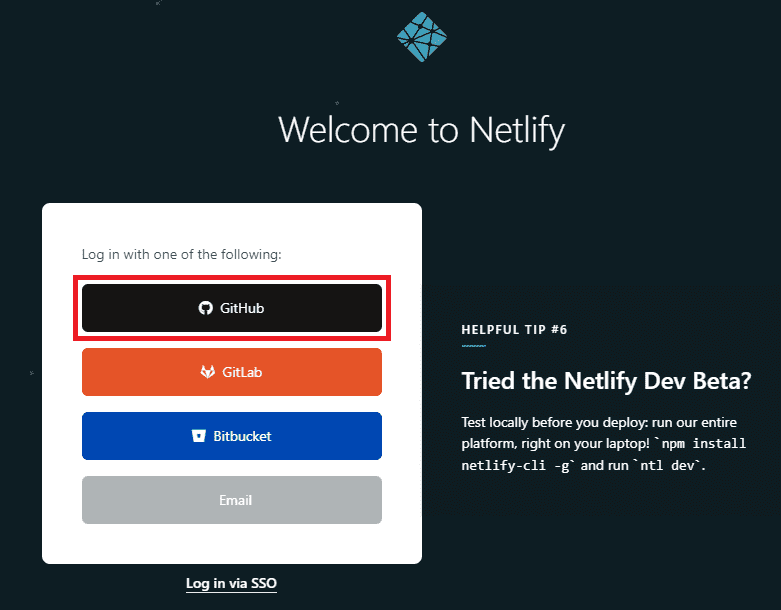 Now, through Github, you are able to proceed on the latest step of the process, on Netlify side. Only the first time, you have to create a Netlify CMS account in order to have control over the Webflow CMS. Choose the repository and connect it to Github.