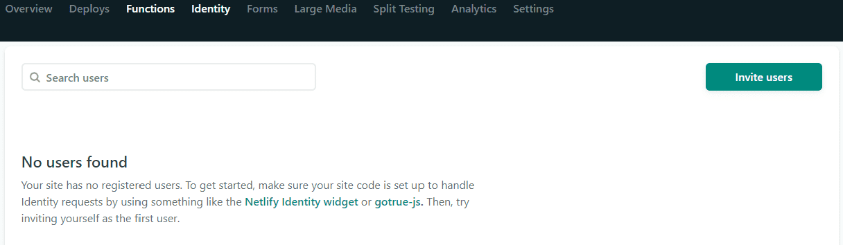 Finally go to Identity from the main menu and click on Invite users to make certain email addresses able to access the backend of the site. Netlify's free tier allows to add 5 email addresses at most.