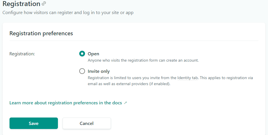 Here, new tabs will open. Under Registration preferences choose Invite only.