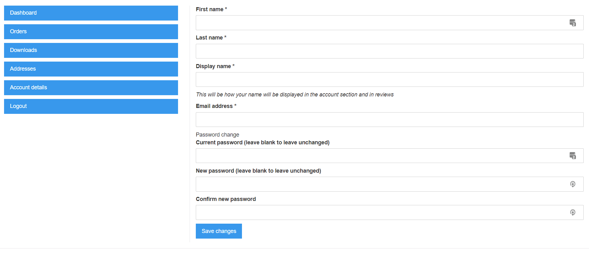 Below you can find an example of a my account page